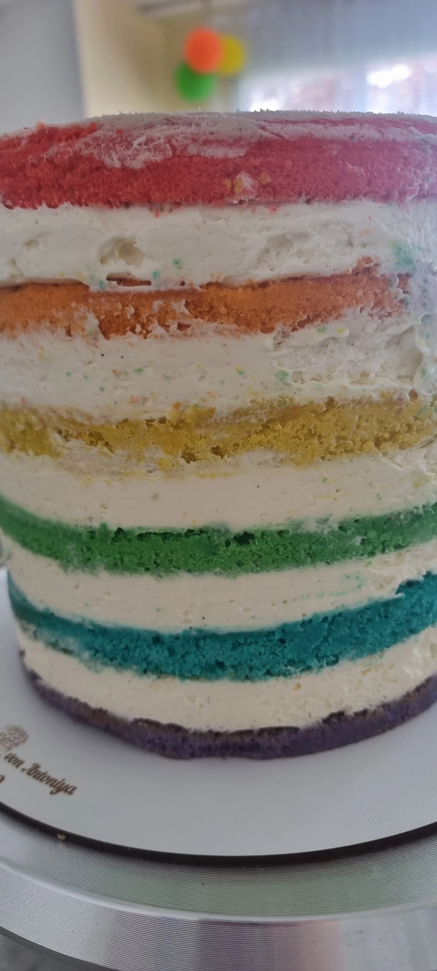 Bunter Regenbogenbiskuit mit einer luftigen Vanillecreme auf Basis von Mascarpone.